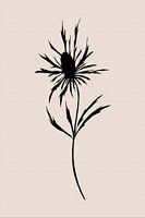 Lijn kunst zwarte plant op beige achtergrond. Semi abstracte minimalistische kunst met een beetje retro vibes. Perfect voor een woonkamer, slaapkamer, wachtkamer, werkkamer, tuin of hal. Bohemian, Zen, Scandinavisch, Basic, New Rural, Romantisch, Japandi woonstijl.