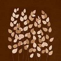 De gelaagdheid van de bladeren, gecombineerd met de subtiele textuur op de achtergrond, creëert een zachte en rustgevende indruk. Het is een minimalistisch en elegant werk met een sterke focus op natuurlijke, neutrale warmte.
