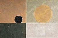 Een krachtig werk waarin scherpe contrasten tussen licht en donker samenkomen om een dramatisch maar sereen effect te creëren.