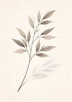 Minimaal, Japans geïnspireerd kunstwerk dat delicate botanische elementen combineert met een zacht, sereen landschap. Neutrale beige tinten, subtiele texturen en een rustige compositie creëren een vredige, moderne esthetiek die perfect is voor Scandinavische, Japanse en minimalistische interieurs.