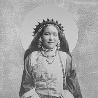 Vintage portret van Bhutanese vrouw in traditionele kleding.