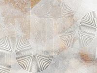 Een abstract schilderij van organische geometrische regenboogvormen op diepe textuur met een indruk van Scandinavische kunst uit Noord-Europa met een vleugje Japanse cultuur.