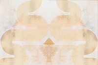 Een abstract schilderij van organische geometrische regenboogvormen op diepe textuur met een indruk van Scandinavische kunst uit Noord-Europa met een vleugje Japanse cultuur.