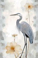 Koop dit bloemen kunstwerk Japandi, Reiger met Bloesemtak van Caroline Guerain op canvas, aluminium dibond, (ingelijste) fotoprint, behang en ArtFrame, op maat geprint in Fine-Art kwaliteit.