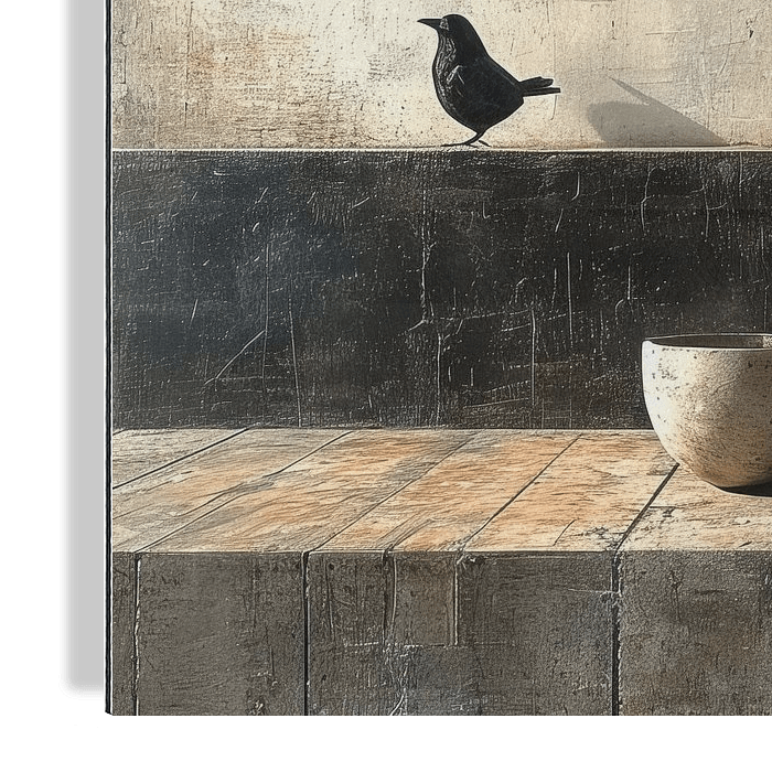 Japandi Shadow Play - Japandi minimalistisch stilleven met vogel