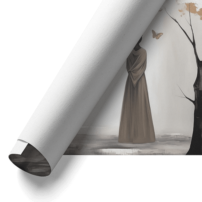 Boom met vlinders / bladeren of kerstlampjes / bloesem en vrouw in Taupe en Goud kleuren.