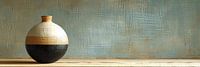 Details: vaas, beige, zwart, hout, textuur, rustiek, modern, minimalistisch, japandi, eenvoudig