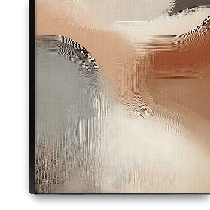FoXo Art creëert een visuele symfonie met het gebruik van warme aardetinten. De werken stralen een rustgevende en tegelijkertijd intrigerende energie uit, waarbij subtiele nuances van zwart en/of grijs de composities verrijken.
