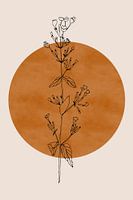 Lijn kunst bloem op terracotta en licht beige achtergrond. Bloemen semi abstracte minimalistische kunst met een beetje retro vibes. Perfect voor een woonkamer, slaapkamer, wachtkamer, werkkamer, tuin of hal. Bohemian, Zen, Scandinavisch, Basic, New Rural, Romantic woonstijl.