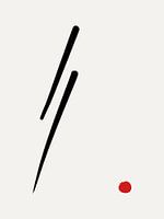 Japandi minimalistisch kunstwerk in sierlijke penseelstreken in zwart met een beige achtergrond en een rode cirkel.