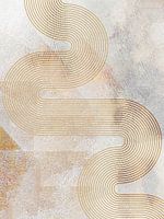 Een abstract schilderij van organische geometrische Japandi regenboogvormen op diepe textuur met een indruk van Scandinavische kunst uit Noord-Europa en de cultuur van Japan.