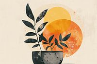 Japandi schilderij - Plant minimalistisch. Hedendaagse scandinavische stijl.