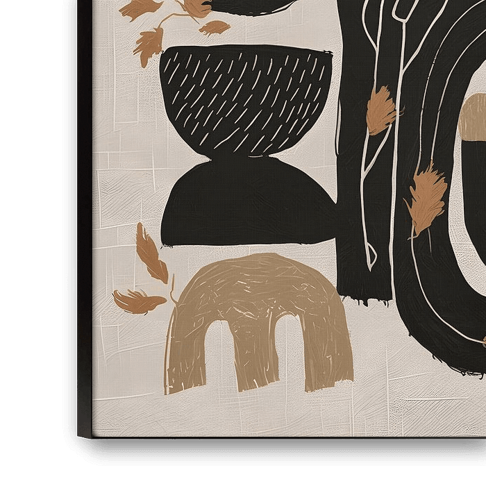 Dit kunstwerk is een dynamische mix van geometrische en organische vormen die de principes van de Japanse stijl weerspiegelen. De gedurfde zwarte vormen steken af tegen een zachtbeige achtergrond, terwijl delicate accenten in aardetinten een verbinding met de natuur creëren. Alle elementen werken harmonieus op elkaar in, waardoor een balans ontstaat die past bij de moderne esthetiek en organische inspiratie. Dit meubel is een prachtige aanwinst voor elke kamer en voegt een uniek accent toe aan je interieur.