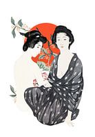 De twee afgebeelde vrouwen zijn afkomstig uit twee verschillende prenten van de Japanse kunstenaar Goyo Hashiguchi (1880-1921).
