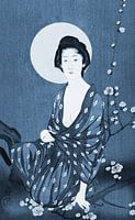 In dit werk heb ik digitaal 2 kunstwerken met elkaar gecombineerd: voor de achtergrond heb ik details uit het kunstwerk "Blooming plum blossom at full moon" van de Japanse kunstenaar Ohara Koson (1877-1945) gebruikt en de dame op de voorgrond is afkomstig uit het kunstwerk "Woman in Summer Kimono"van de Japanse kunstenaar Goyo…