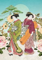Het is mijn eerbetoon aan de klassieke ukiyo-e stijl ("prenten van de vliedende wereld") en toont de gratie van het traditionele Japanse leven.
