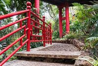 botanical public gardens in Funchal Madeira with the japanese part with red bridges and ornaments