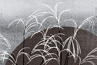 De dauw kruipt door het dal omhoog, de zon zakt lager en lager en kleurt van geel naar rood totdat ie achter het riet onder de horizon zakt: Japanse zonsondergang.