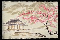 Japans Landschap met theehuis en kersenbloesem van Studio Pieternel