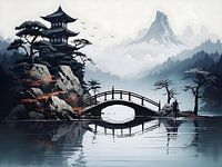 Een Japans landschap brengt een harmonieus samenspel tussen natuur en cultuur tot leven. Sierlijke kersenbloesems sieren de boomtakken, terwijl vredige tempels opdoemen tussen weelderige tuinen. Met majestueuze bergen op de achtergrond ademt het landschap sereniteit, eeuwenoude tradities en een tijdloze verbondenheid met de natuur.