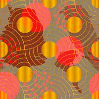 Kleurrijk abstract Aziatisch patroon. Naadloos - kan worden gebruikt als behang. Delicate geometrische ronde vormen. Verfspatten en penseelstreken in warme kleuren, geïnspireerd op vintage oosterse stoffen en textiel creëren een rijk expressief kunstwerk.