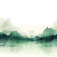 Koop dit landschapskunstwerk Japans landschap in groene tinten van Lauri Creates op canvas, aluminium dibond, (ingelijste) fotoprint, behang en ArtFrame, op maat geprint in Fine-Art kwaliteit.