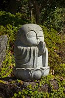 Japans oud historisch stenen Boeddha beeld in het park, een symbool voor zen boeddhisme