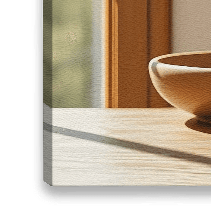 Dit moderne stilleven ademt de geest van het Japanse minimalisme en het impressionistische spel van licht en leegte. Het nodigt de toeschouwer uit tot verstilling, tot het zien van schoonheid in imperfectie.