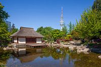 Japanse Tuin, Theehuis en Vijver met TV Toren, Hamburg, Duitsland, Europa