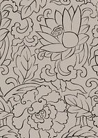 Japanse bloesemtakken als houtsnede schilderij in zwart op trendy warm beige grijs crème.