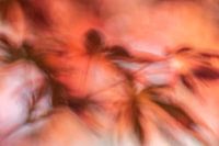 abstracte, bewust onscherpe close up van de tak van een Japanse esdoorn, met een oranje rode achtergrond