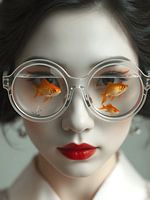 Stap in een droomwereld waar traditie en fantasie elkaar ontmoeten. Dit surrealistische schilderij toont een Japanse geisha met een mysterieus serene uitstraling. Wat direct in het oog springt, is haar gigantische bril, die fungeert als een mini-aquarium. In elk glas zwemmen twee levendige goudvissen, gedetailleerd geschilderd met een…