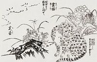 Japanse kat (1679-1748) vintage houtsnede door Tachibana Morikuni.