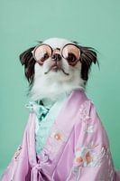 Elegantie en charme komen samen in deze kleine persoonlijkheid, die trots poseert in een delicate, paarse kimono. De gespiegelde ronde glazen geven haar een vleugje extravagantie, terwijl het gedetailleerde ontwerp van de kimono culturele gratie weerspiegelt. Een aandachtige blik die zowel nieuwsgierigheid als zelfvertrouwen uitstraalt.
