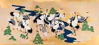 Japanse kraanvogels en pijnbomen (linkerpaneel), Yamamoto Sodō (midden 19e eeuw)