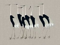 Japanse kraanvogels in een rustgevende voorstelling als schilderij op een aangename monochrome achtergrond met een diepe vintage textuur.