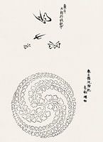Japanse vintage woodblock print uit Yatsuo no tsubaki (1860-1869) door Taguchi Tomoki. Yatsuo no tsubaki is een Japans boek uit de late Edo-periode (江戸後期刊) met houtsneden, uitgegeven door Taguchi Tomoki.