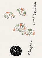 Japanse vintage woodblock print uit Yatsuo no tsubaki (1860-1869) door Taguchi Tomoki. Yatsuo no tsubaki is een Japans boek uit de late Edo-periode (江戸後期刊) met houtsneden, uitgegeven door Taguchi Tomoki.