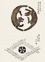 Japanse vintage woodblock print uit Yatsuo no tsubaki (1860-1869) door Taguchi Tomoki. Yatsuo no tsubaki is een Japans boek uit de late Edo-periode (江戸後期刊) met houtsneden, uitgegeven door Taguchi Tomoki.