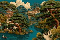 schilderachtige japanse kunst met heldere kleuren en fijne details