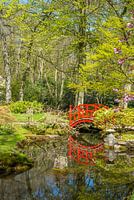Japanse tuin met rode brug
