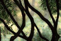 Herfstkleuren in de Japanse tuin. Deze tuin is gelegen in park Clingendael Den Haag. Door het sterke bokeh effect heeft de foto een impressionistische/symbolistische uitstraling.