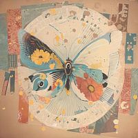 Deze illustratie is gemaakt in Japanse stijl. De vlinder heeft een fraaie print van bloemen en kleurige patronen. Een vleugel lijkt zelfs op een vogel. Dit werk is gemaakt met ai op basis van een handgetekende illustratie. De kleuren en belijning en texturen en contrast zijn geoptimaliseerd met digitale tekentechnieken.