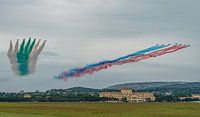 De jarige Patrouille de France vliegt samen met de Saudi Hawks boven Base aérienne 701 Salon-de-Provence in Zuid Frankrijk.