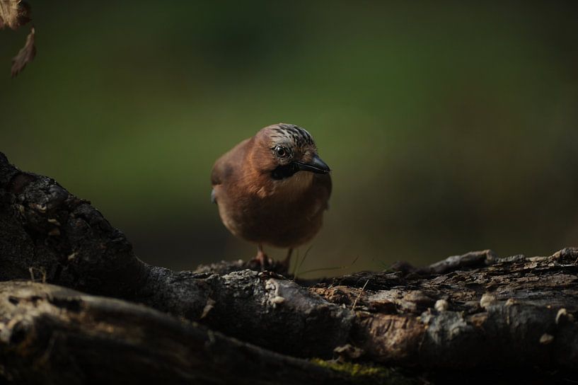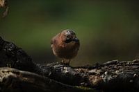 Hier is een eiken gaai, op het moment dat zijn ogen die van mijn fotograaf ontmoeten!