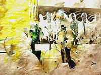 Als je om je heen kijkt zie je dat iedereen helemaal in de ban is van de muziek en dat de ruimte warm, veilig en harmonieus aanvoelt. Dit digitale beeld bouwt voort op een foto die ik een paar jaar geleden nam tijdens een openlucht jazzconcert tijdens het Umbria Jazz Festival. Ik herinner me weinig licht, een licht rokerige sfeer in deze buitenruimte en het geluid van zachte jazz dat door de nachtelijke lucht zweefde. Dit alles heb ik geprobeerd vast te leggen.