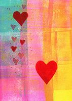 Je bent geliefd is een acrylschilderij in portretformaat geschilderd door de kunstenaar Karen Kaspar. De focus van het schilderij is een felrood hart dat drijft op een abstracte achtergrond in kleurrijke tinten geel, oranje, roze en turquoise. Het wordt vergezeld door andere kleinere harten in rood en roze. Je bent geliefd - het perfecte cadeau voor een geliefde - voor Valentijnsdag, een verjaardag, Moederdag, verloving en bruiloft of gewoon om te zeggen - ik hou van je.