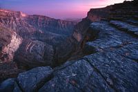 De Jebel Shams Canyon, ook wel de Grand Canyon van het Midden-Oosten genoemd, op het gouden uur.
