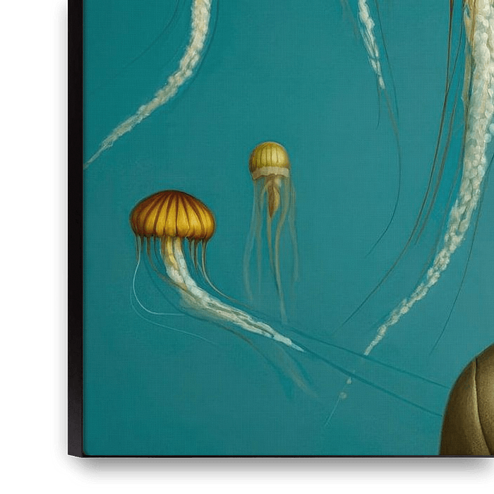 Jouw gekozen kunst op doek, gespannen in een aluminium frame. Snel en eenvoudig te verwisselen voor een frisse uitstraling en helemaal zoals jij het wilt.