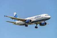 Een JetBlue Airbus A320 vlak voor de landing gefotografeerd bij William P. Hobby Airport in Houston op 2 mei 2016.